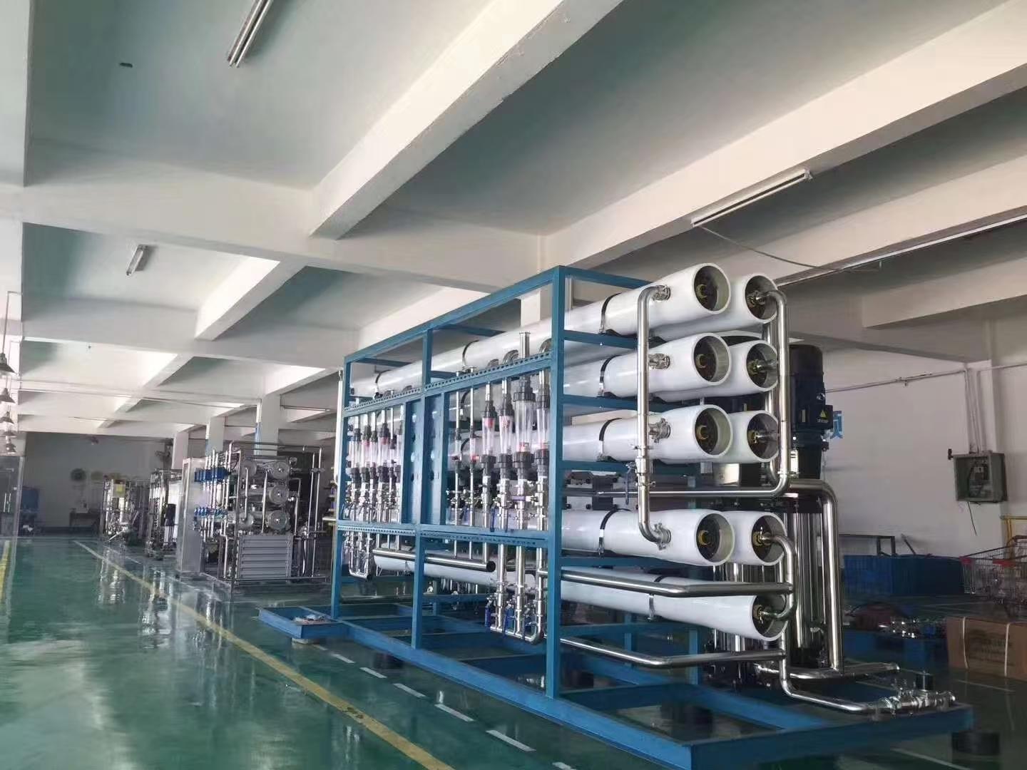 反渗透装置是 10 吨工业纯水设备的核心部分,它利用半透膜的特性来实现水的净化和分离。半透膜是一种只允许水等小分子物质通过,而对水中的盐分、有机物、细菌等大分子杂质具有截留作用的特殊薄膜。在反渗透装置中,原水在外界压力的作用下,通过半透膜,水分子透过膜进入淡水侧,而水中的各种杂质则被截留在浓水侧,从而实现水与杂质的分离。反渗透装置的脱盐率通常可达 97% 以上,能够有效去除水中的大部分离子、有机物和微生物等。它不仅能够满足一般工业生产对纯水的水质要求,对于一些对水质要求极高的行业,如电子芯片制造、制药等,反渗透装置也是不可或缺的关键设备。为了提高反渗透装置的运行效率和产水质量,通常会采用多段式设计,将多个反渗透膜组件串联起来,使原水在经过第一段膜组件处理后,浓水再进入下一段膜组件继续进行处理,这样可以充分利用原水的压力,提高水的回收率,同时保证产水的质量稳定。
